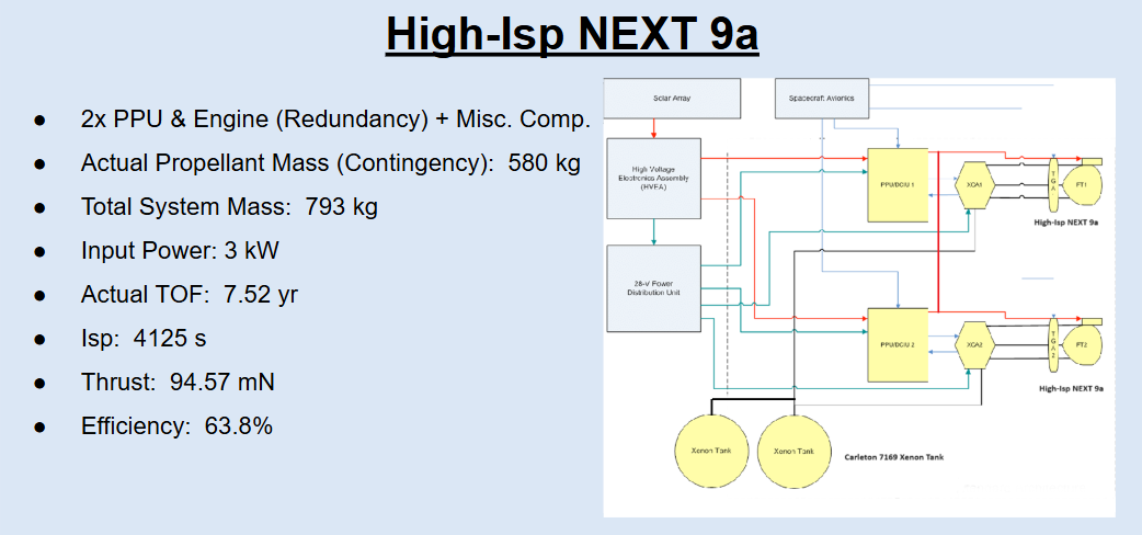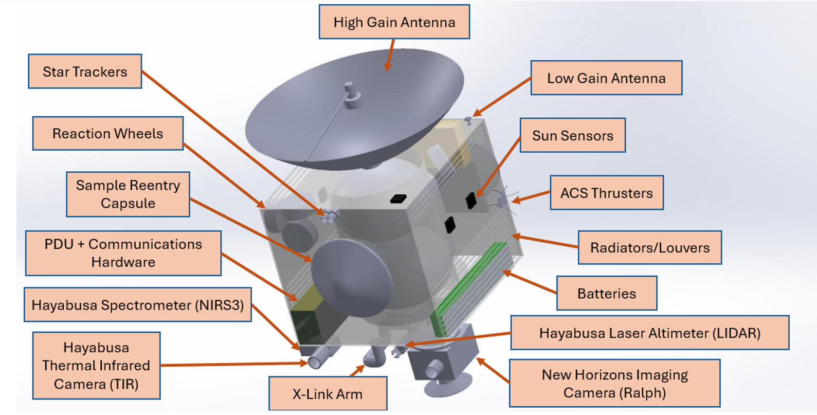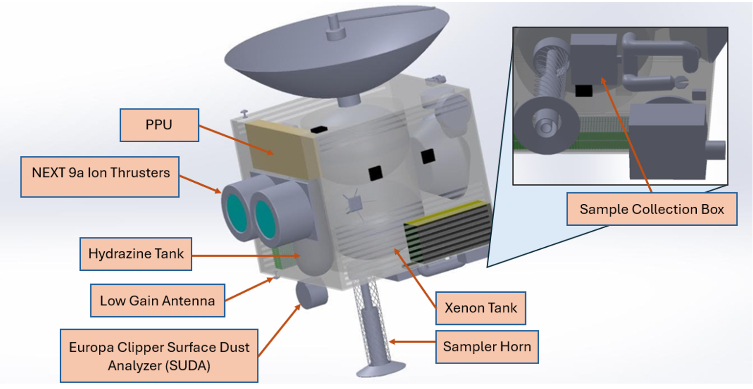 As part of a 10-person team, I helped develop the Mayfly spacecraft, designed for a sample retrieval mission. I was responsible for the spacecraft's launch vehicle and propulsion system, and collaborated closely with the mission trajectory, power systems, and thermal systems leads. We used an iterative design approach to ensure the spacecraft had sufficient power and capability to complete the mission successfully. I conducted trade studies to evaluate the feasibility of chemical versus solar electric propulsion (SEP) systems, ultimately selecting SEP. I then evaluated a range of thruster options, analyzing total system mass, specific impulse, power consumption, and thrust in the context of mission constraints to determine the optimal configuration.