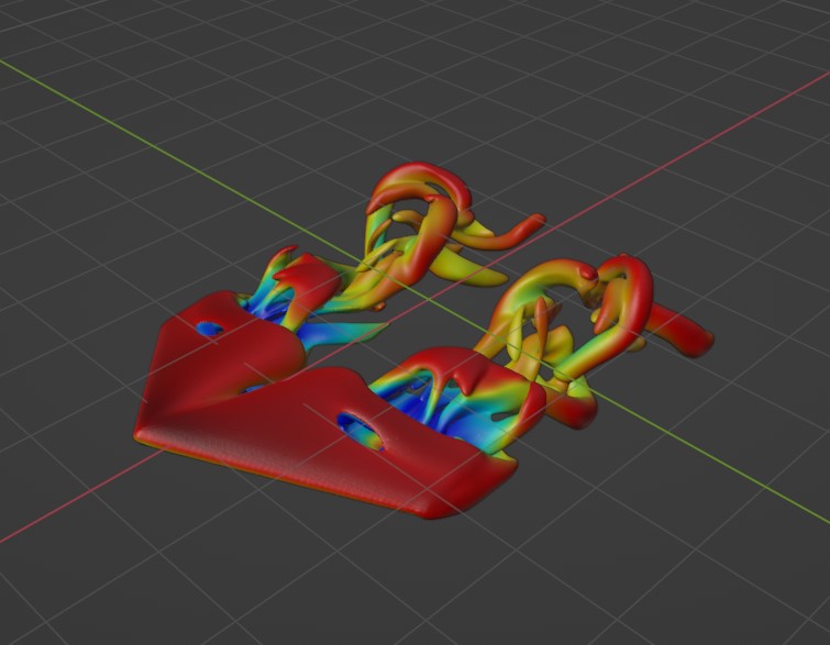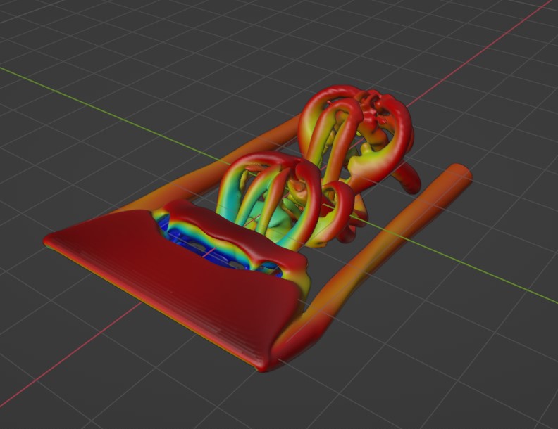 To do this, I developed a set of MATLAB functions that convert CFD simulation data into 3D-printable models. Once the simulation data is imported, flow information is interpolated onto a fine 3D mesh grid. I remove any discontinuities in the flow and then project velocity data as color onto the surface of the generated structure. The final result is saved as a colored .obj file, ready for 3D printing.